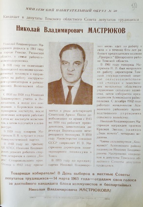Предвыборная листовка Николая Мастрюкова. Источник: Государственный архив Томской области