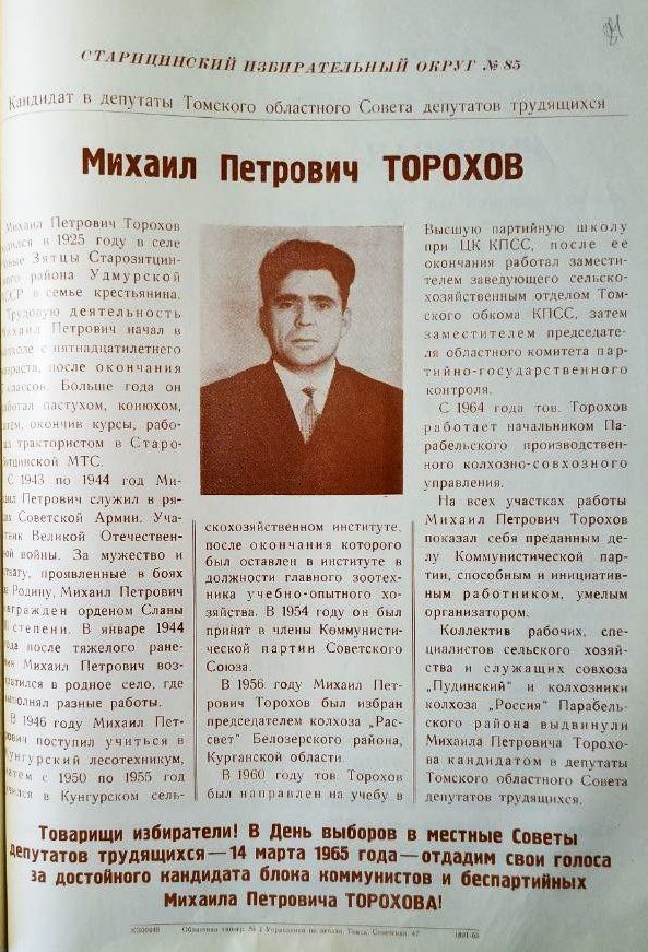 Предвыборная листовка Михаила Торохова. Источник: Государственный архив Томской области