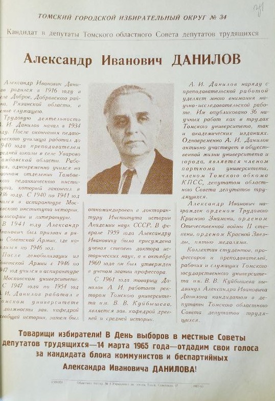 Представители ректорского корпуса томских вузов обязательно входили в состав областного Совета. В 1963 году депутатом стал ректор Томского государственного университета Александр Иванович Данилов.