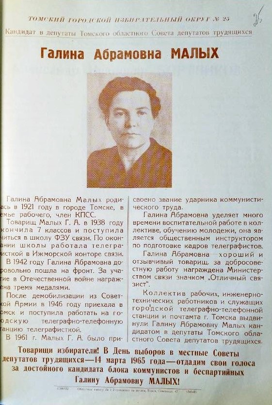 Предвыборная листовка Г.А. Малых, 1963. Источник: Государственный арзив Томской области
