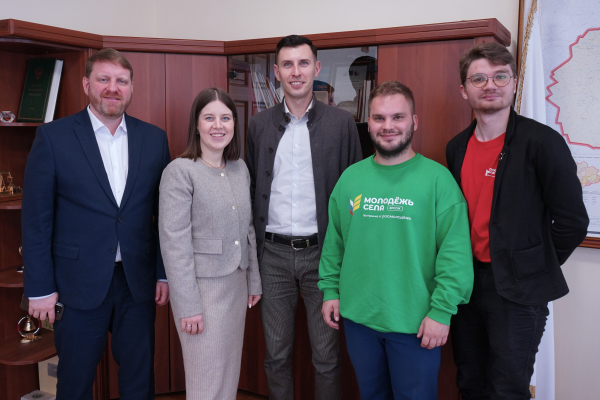 Депутат Законодательной думы Степан Михайлов вместе с руководителем Молодежного парламента Томской области Анастасией Прониной встретился с председателем Российского союза сельской молодежи (РССМ) Дмитрием Пекуровским и председателем Томского регионального отделения РССМ Семеном Учватовым.