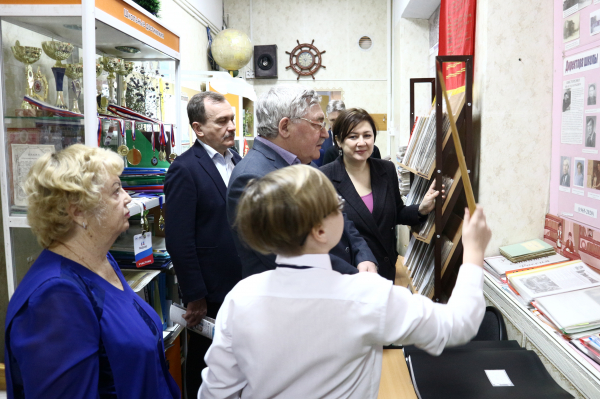 Депутаты посетили Кожевниковскую среднюю школу № 1, которая является областной экспериментальной площадкой по гражданскому образованию. Работа школьного музея – одна из составляющих в воспитательной системе школы. Музей школы занимается не только патриотическим воспитанием учащихся, краеведческой работой, но и социальным проектированием, тем самым внося свой вклад в гражданское воспитание школьников. Основной фонд музея насчитывает более 2500 экспонатов. В библиотеке хранятся книги, подаренные музею ветеранами войны, выпускниками школы, учителями, всего 270 экземпляров.