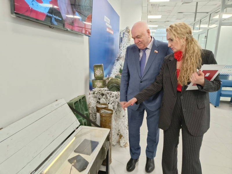 В Штабе общественной поддержки Томской области открылась патриотическая выставка «СВОи», посвященная двухлетней годовщине проведения специальной военной операции. В церемонии открытия экспозиции приняли участие ветераны и военнослужащие, семьи участников СВО, волонтеры, представители поисковых отрядов, председатель облдумы Оксана Козловская и депутат Владимир Резников.