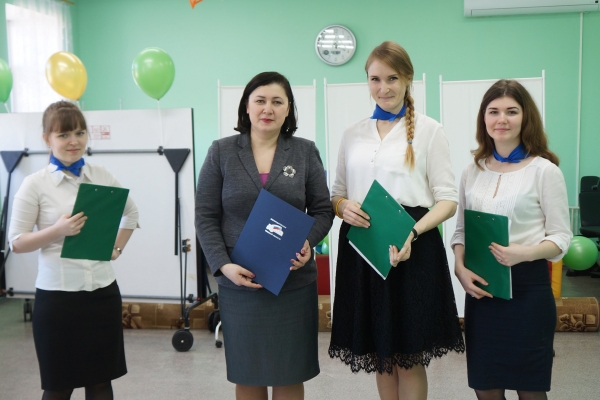 Галина Немцева отметила организацию Благодарственным письмом Законодательной Думы Томской области и подарила юным «молодым бойцам» один из символов праздника – солдатские пилотки.