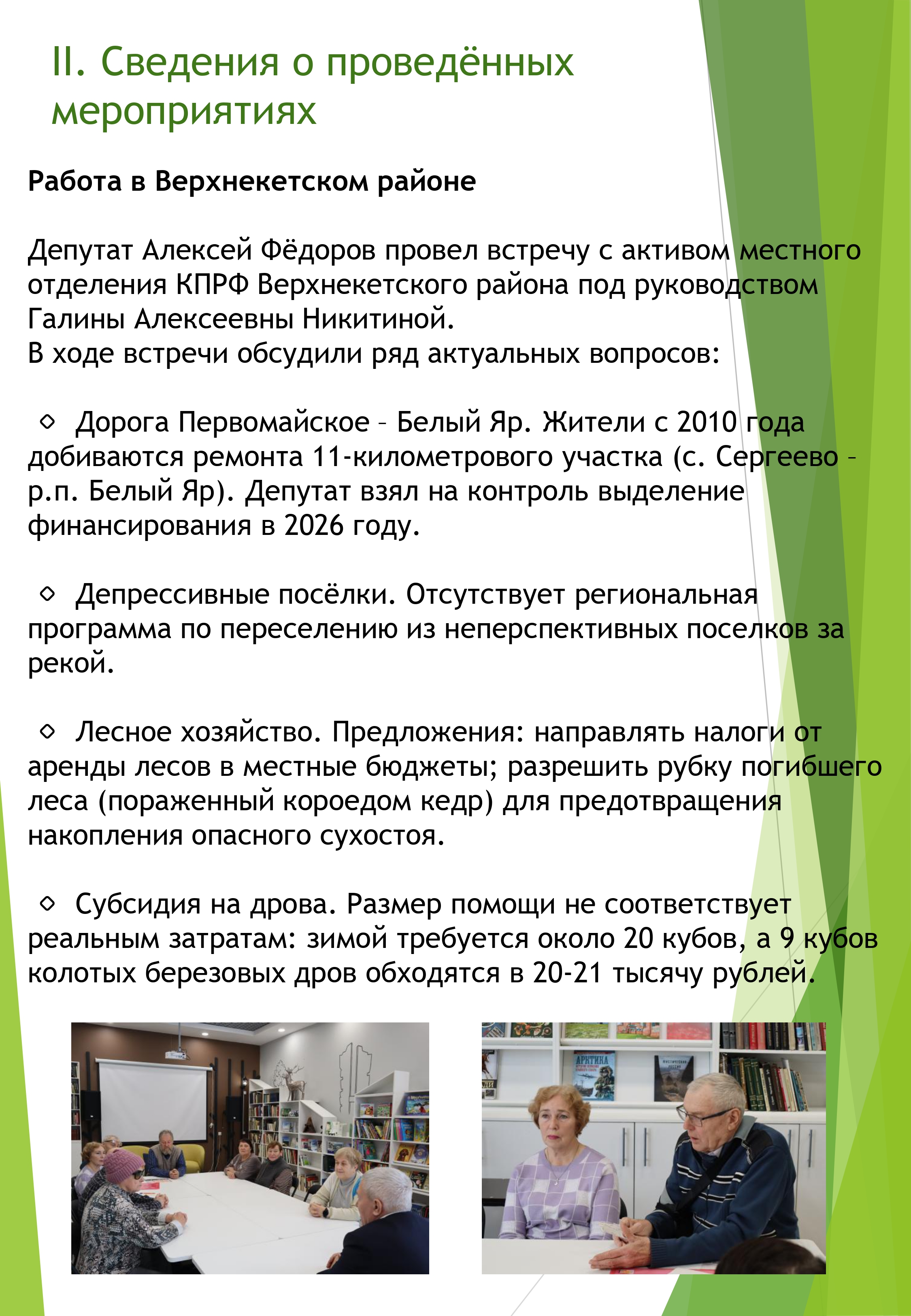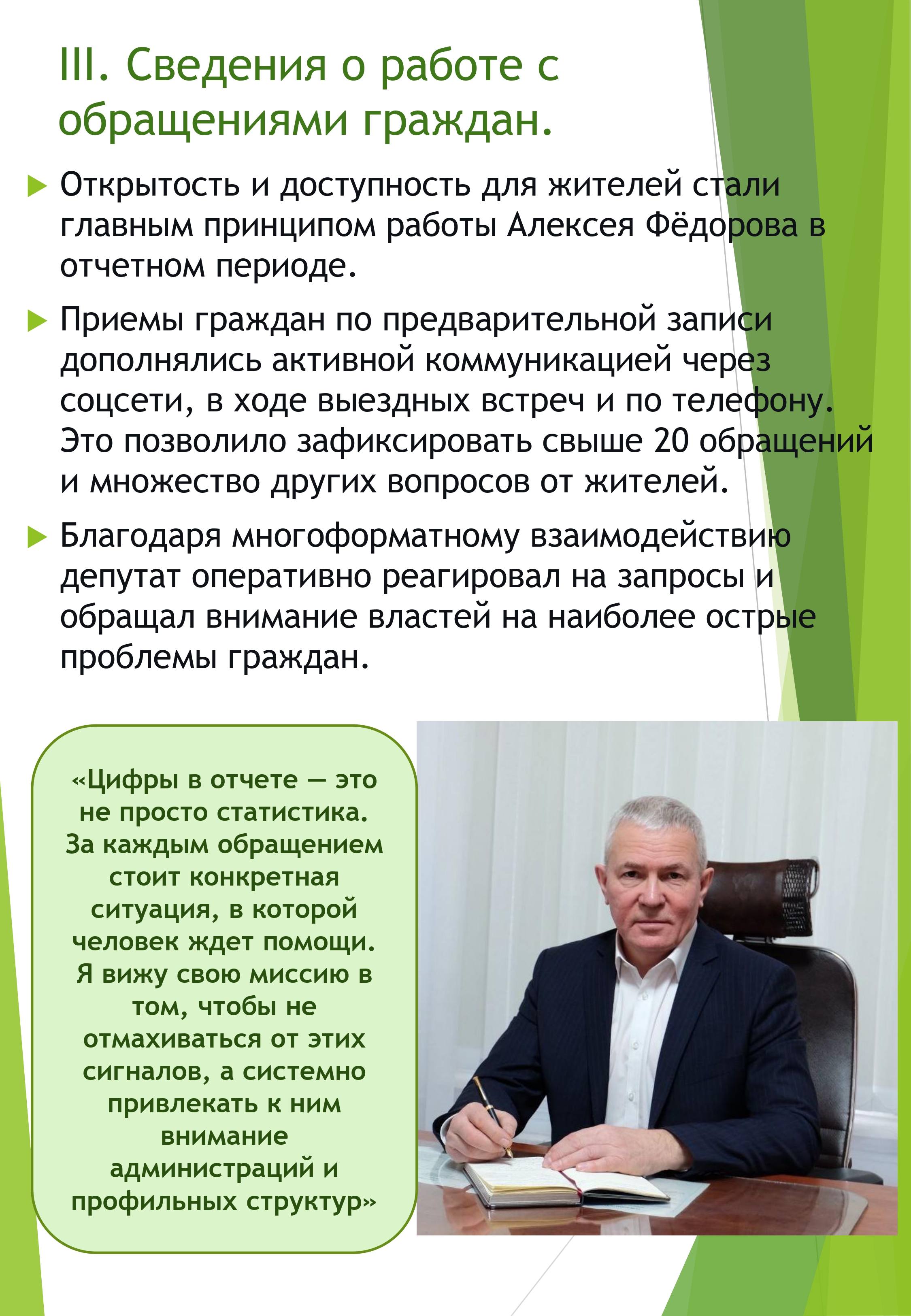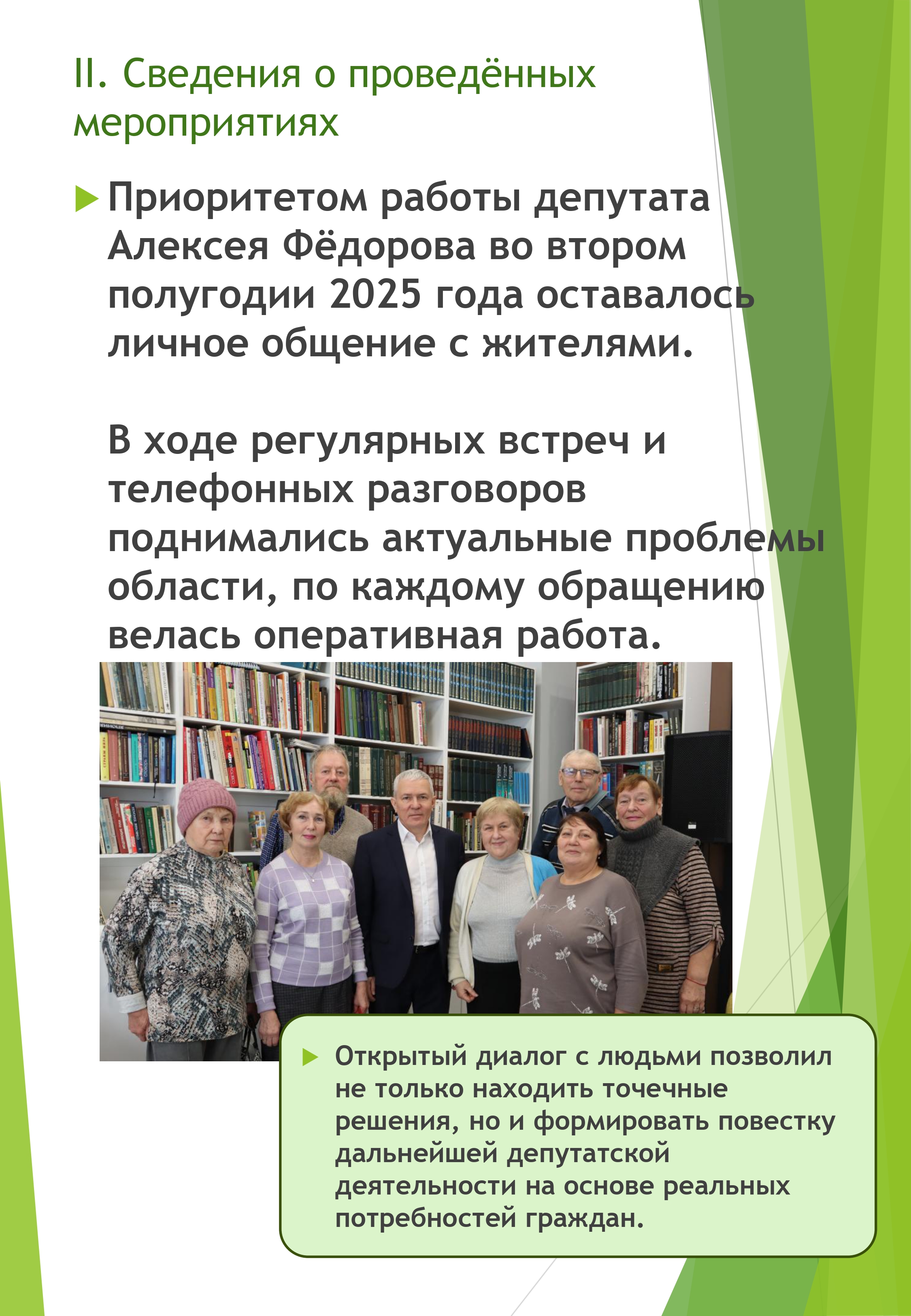 Отчет о работе депутата А.Г. Фёдорова за II полугодие 2025 года