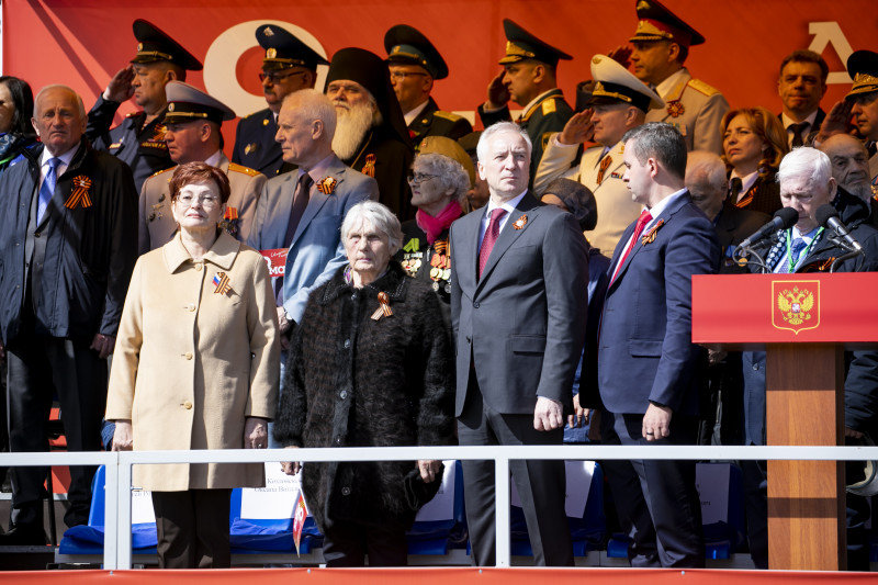 На проспект Ленина выехала военная техника времен Великой Отечественной войны. Перед парадными расчетами и томичами выступили губернатор Томской области, мэр Томска, участник СВО.