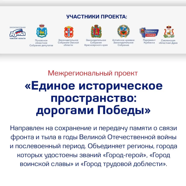 Проект «Дорогами Победы» — межпарламентское партнёрство, которое соединяет историю фронта и тыла в годы Великой Отечественной войны.