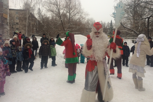 Настоящий новогодний праздник был устроен ребятишкам, проживающим по ул. Ивановского. В преддверии данного мероприятия на территории микрорайона были возведены горка и ледяные фигуры.