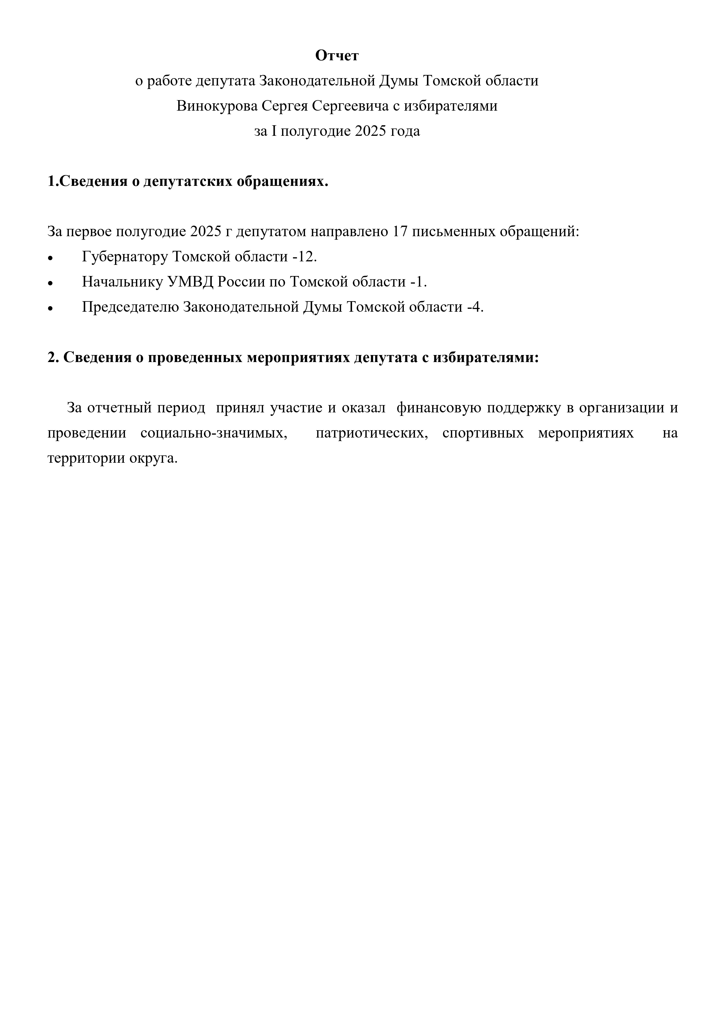Отчет о работе депутата С.С. Винокурова за I полугодие 2025 года